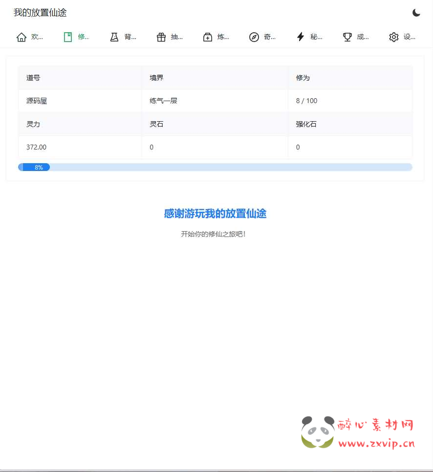 ![图片[2]|H-247 修仙文字网页小游戏【我的放置仙途】WIN系服务端+详细搭建教程|醉心素材|手游源码|端游源码|资源教程|工具分享|免费源码](https://www.zxvip.cn/wp-content/uploads/2025/03/20250314133926972-image.png)